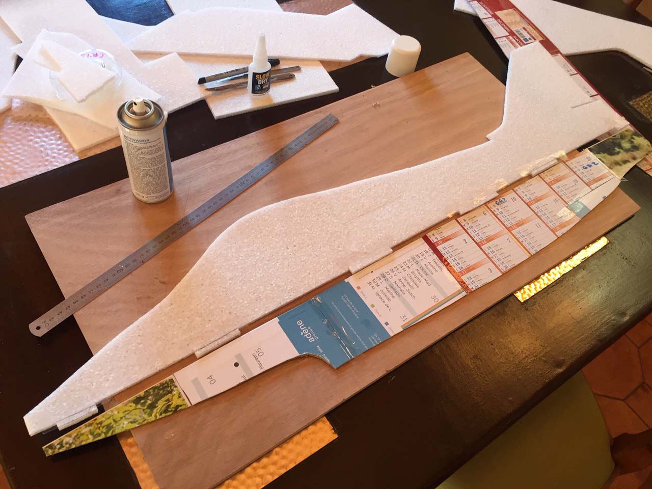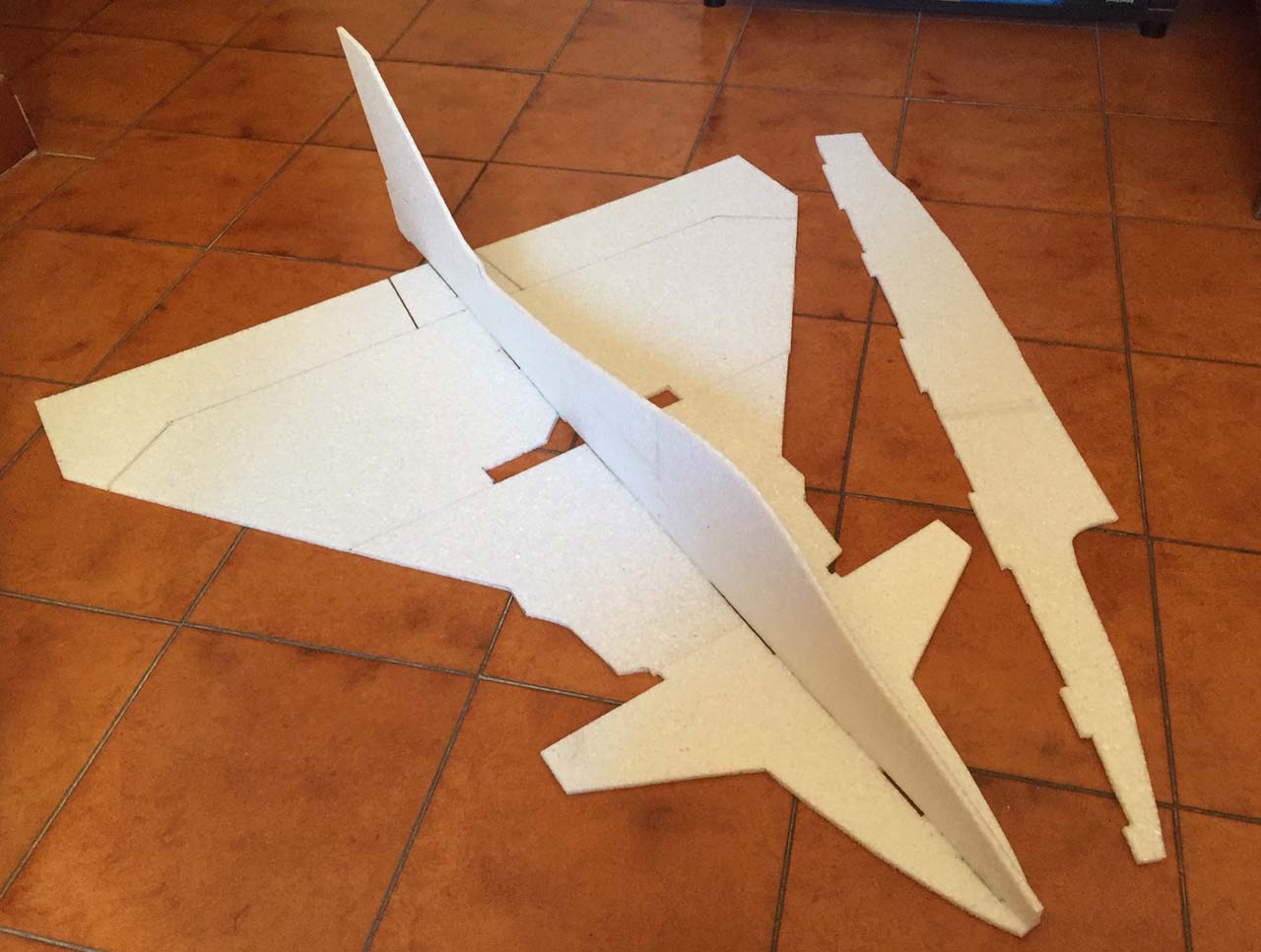 j'ai ensuite découpé dans du carton de calendrier, des gabarits, puis découpé dans de l'EPP de 6mm (en fait, 5,8mm)
