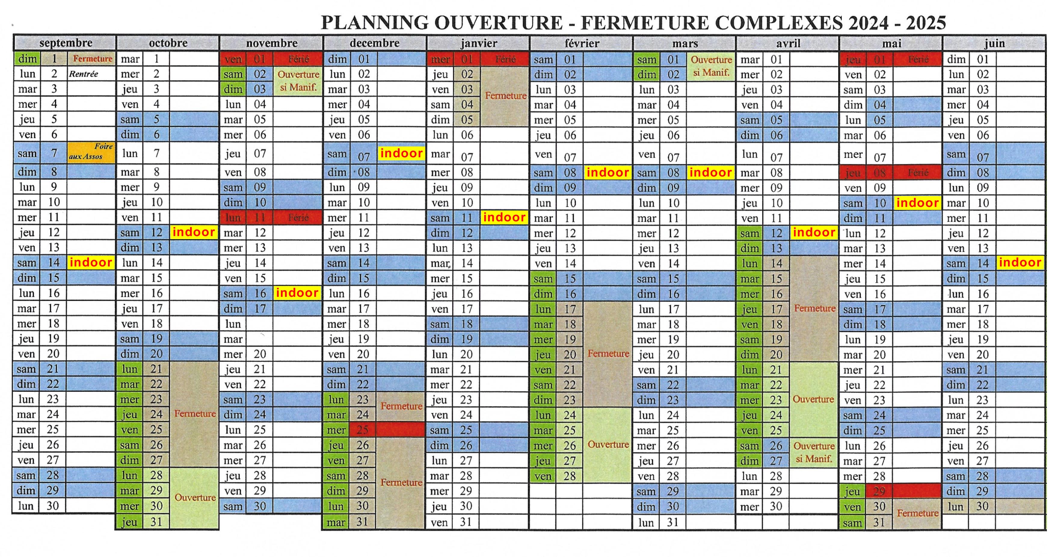 Veuillez trouver ci-dessous, les dates des créneaux d'indoor