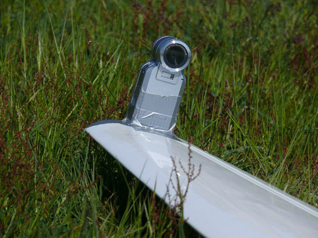 avec du scotch ! Y'en a qui auraient fait une platine, encastré la caméra dans laile, mis un servo pour la commande. De vrais pros, quoi ! non mais ! |