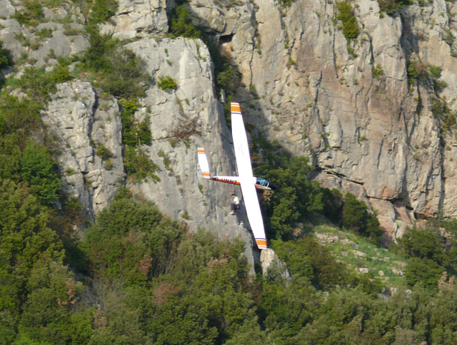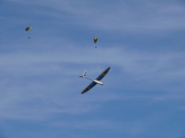 Le lanceur est resté accroché au planeur ?? En tout cas, beau cadrage ! Faut le faire, cadrer le planeur et le type qui grimpe ! c'est du travail de pro ! (ou de bol !) |