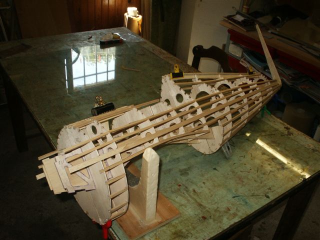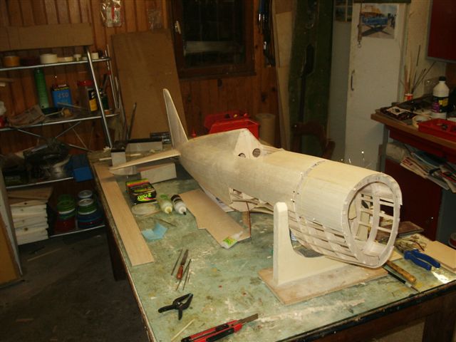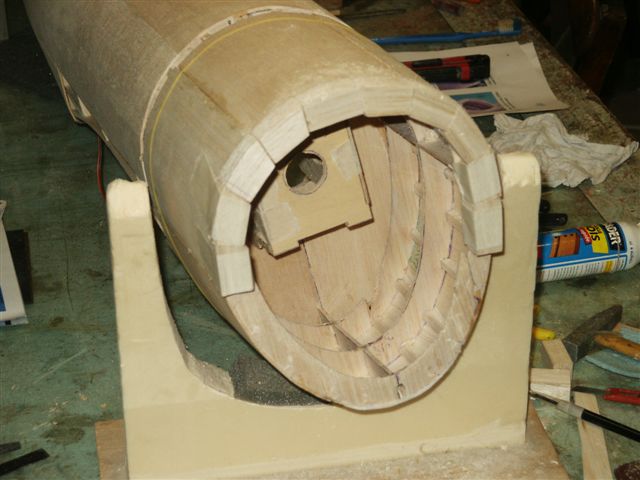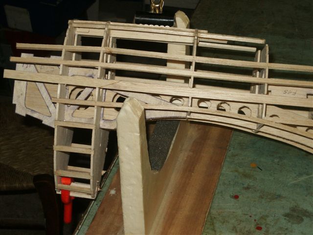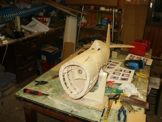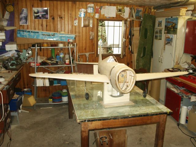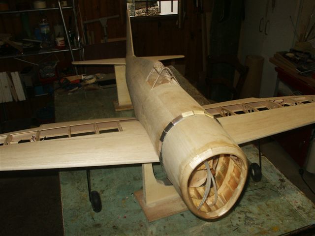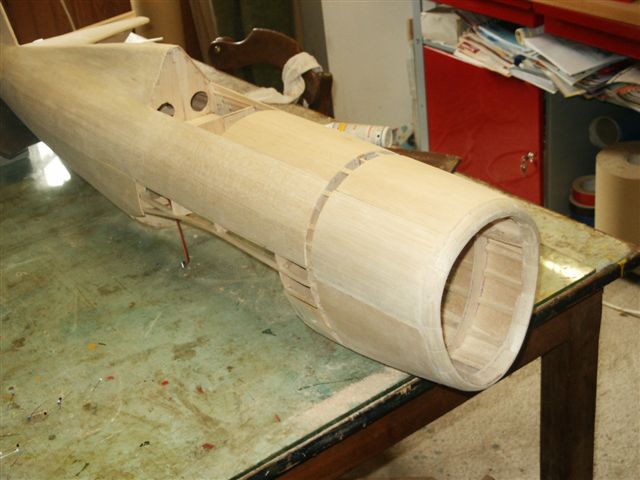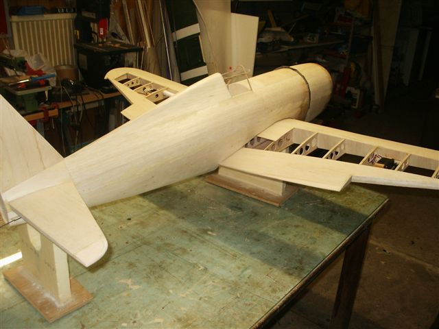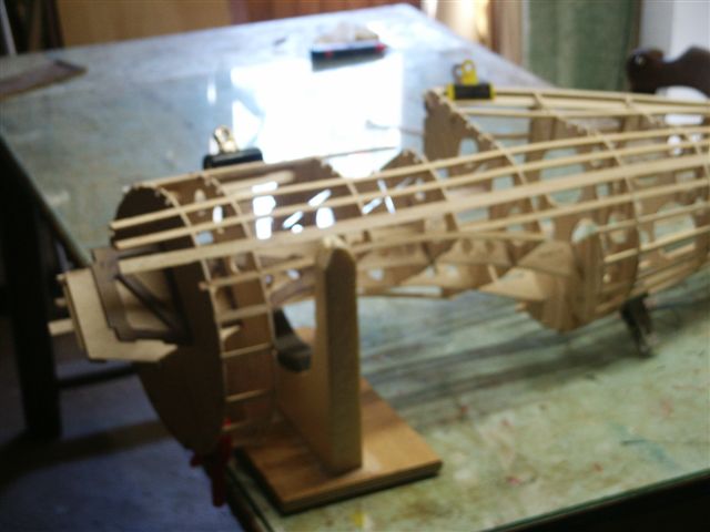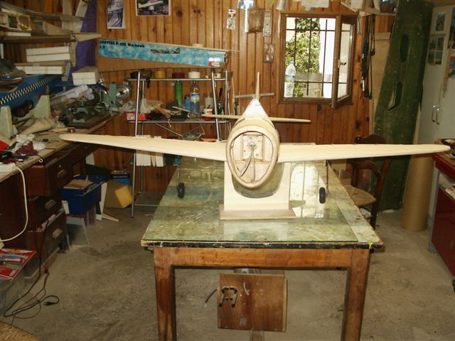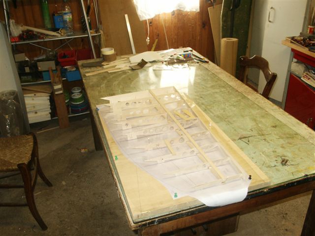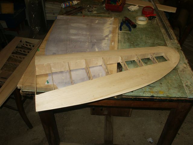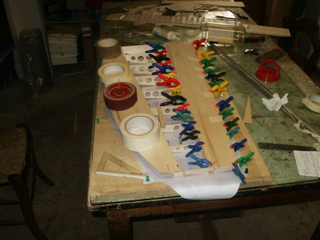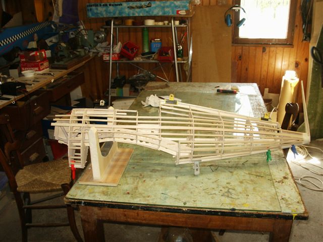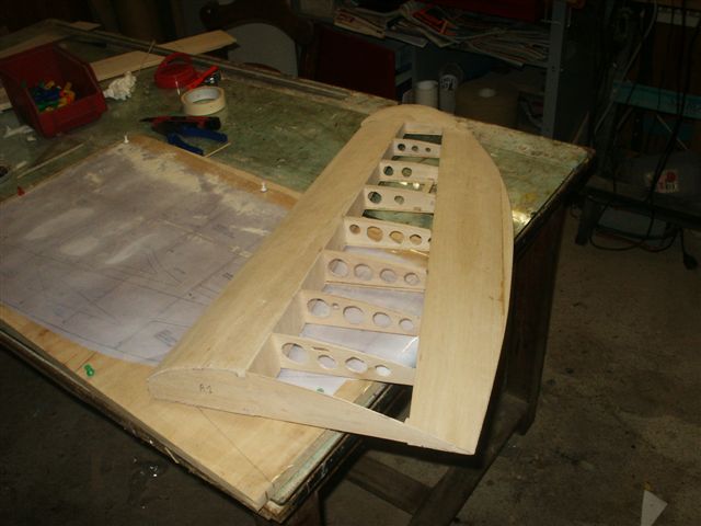 On voit ici le vrillage négatif de l'aile, obtenu par les talons des nervures.
