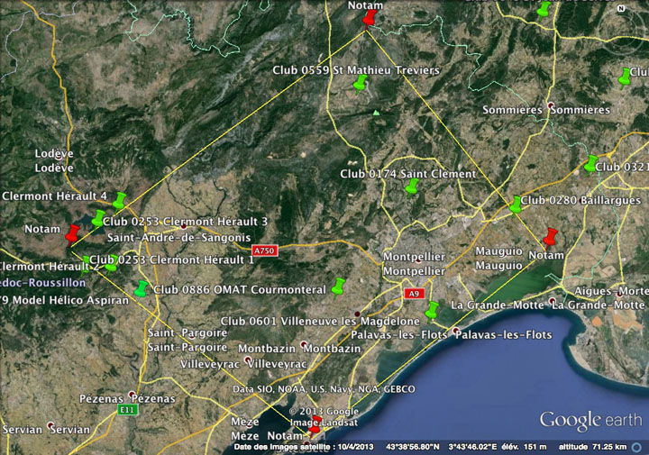 Comme l'indique le notam joint et la photo jointe, 7 sites sont impliqués dans ce notam: