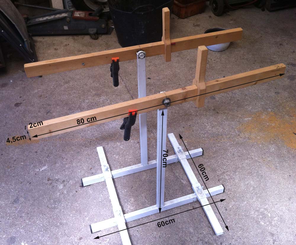 avec entretoises permettant d'écarter les deux supports.